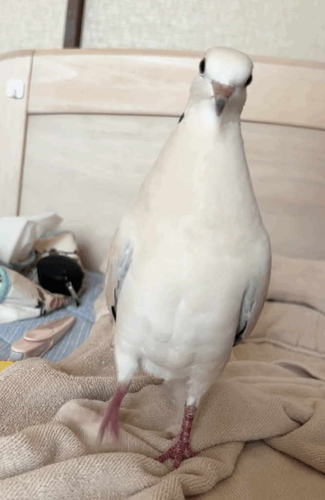 2025.3に飼い主さんのお家にやってきたジュズカケバトのきなこもちでーす!もちもちボディを世界に見せつけてあげよう✌️